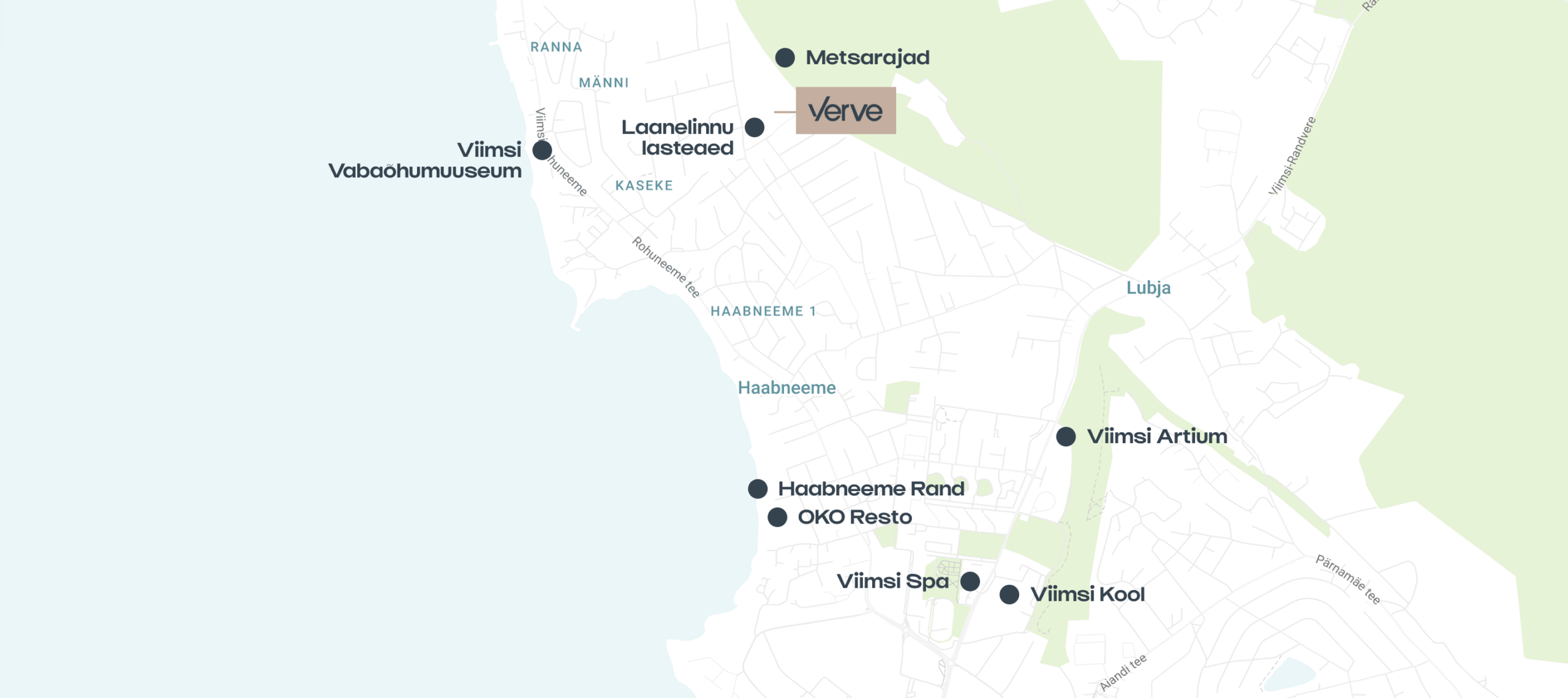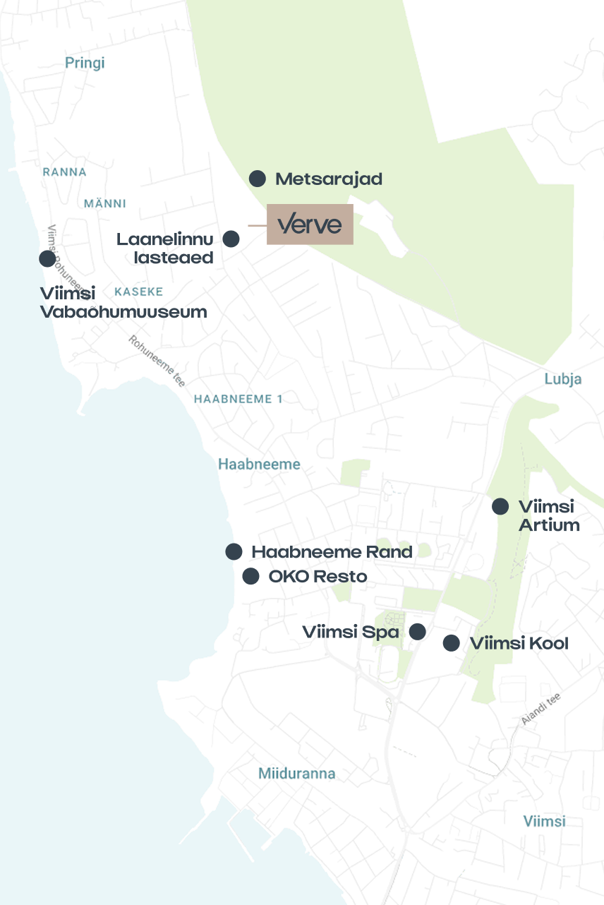 Verve kodud asuvad kõrghaljastusega Viimsi ürgmetsas, kus loodus kujundab kogu elukeskkonna. Arhitektuur on loodusega kooskõlas – hooned on paigutatud ja liigentatud nii, et säiliksid olemasolev mets, suured puud ja looduslik reljeef ning et igale kodule tekiks privaatne, rahulik ja rohelusega ümbritsetud eluruum.