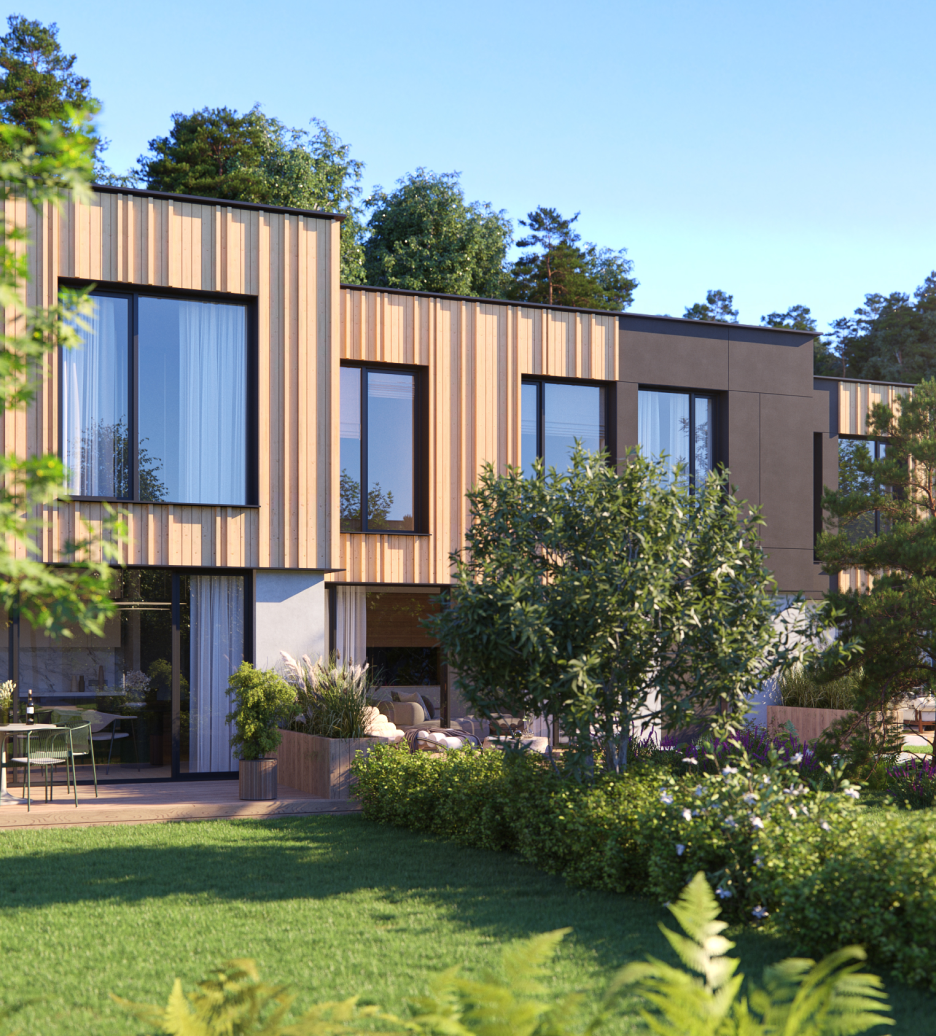 Hoone välisseinad on kaetud krohviga, laudisega ja fassaadiplaadiga – vastavalt arhitektuursele lahendusele.